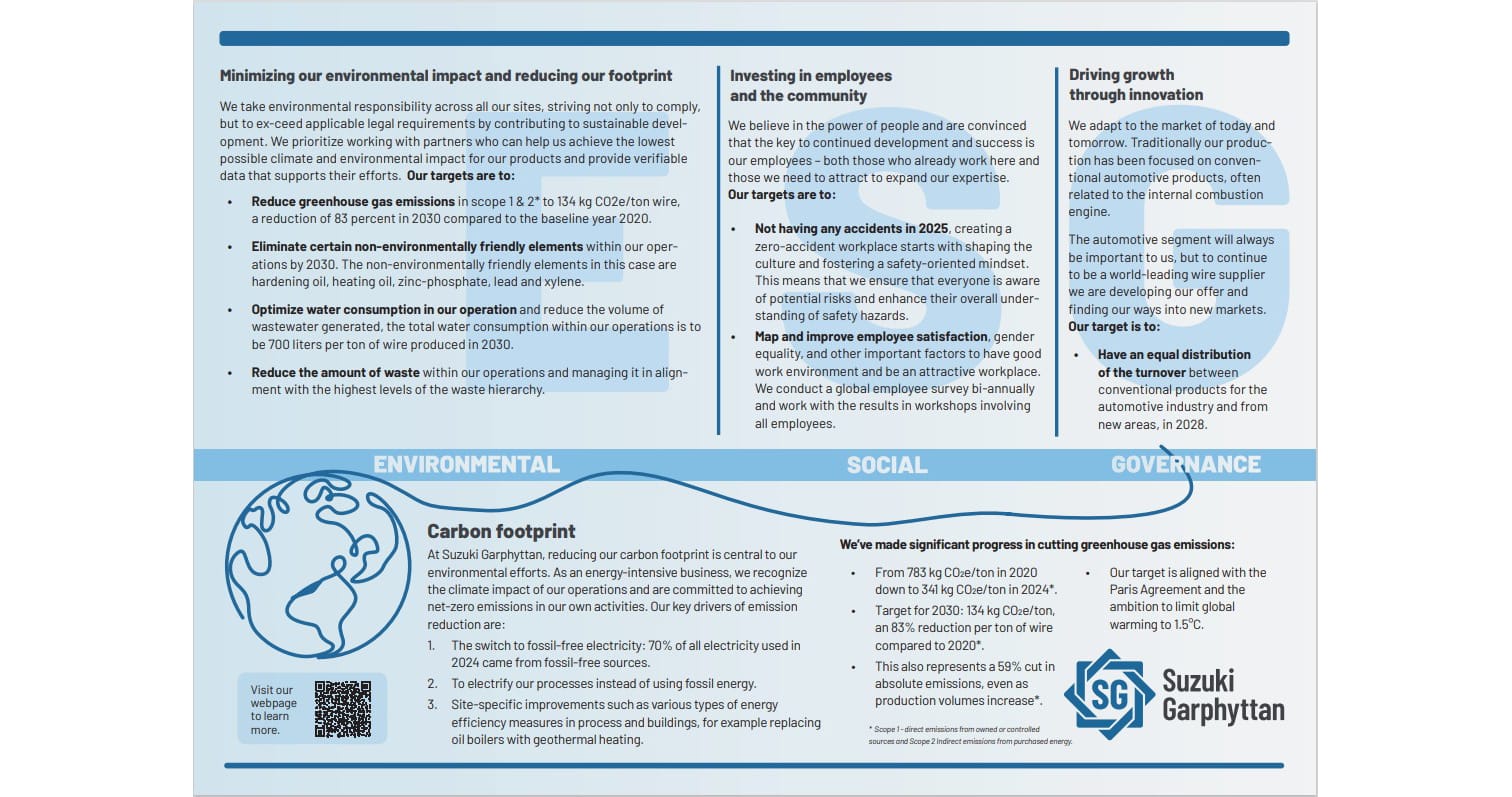 We have defined clear targets and activities across all three areas of sustainability - environment, social, and governance - to guide our progress and ensure long-term impact.