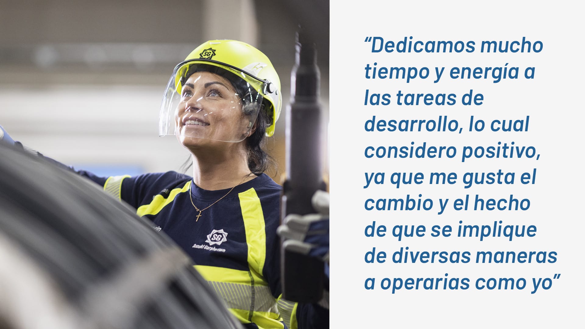 “Dedicamos mucho tiempo y energía a las tareas de desarrollo, lo cual considero positivo, ya que me gusta el cambio y el hecho de que se implique de diversas maneras a operarias como yo”.