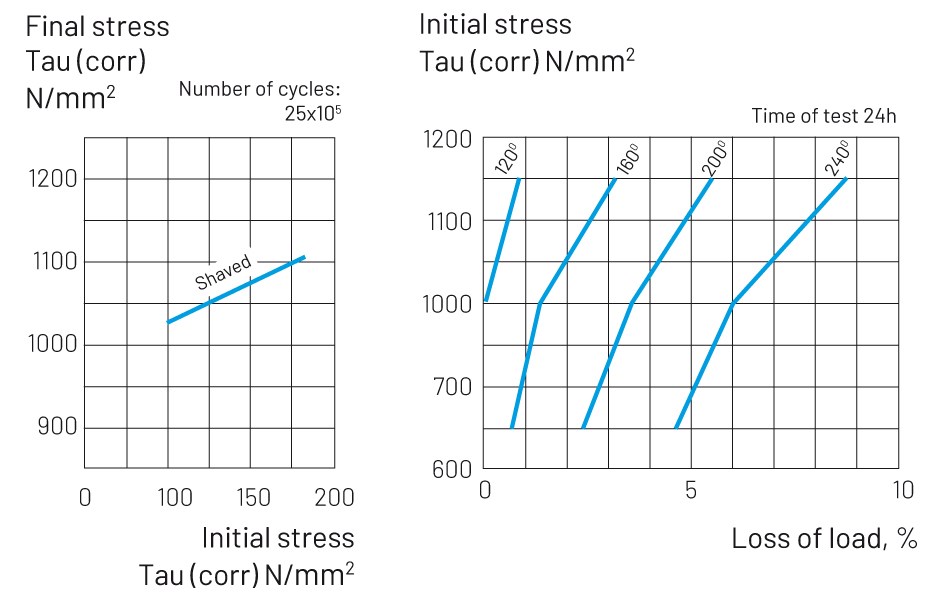 In diagram 1 the fatigue properties of this grade are illustrated in a Goodman-diagram, based on a special test spring design.